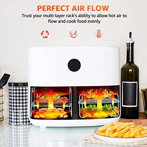 - 🍤【High Quality Food Grade Material】The air fryer racks for dual air fryers are made of food-grade 304 stainless steel, which is durable and sturdy, BPA-free, smooth edge without burrs. They are made to handle high temperatures and provide long term use. The mesh design of the air fryer rack can help air circulation, and the food is heated more evenly, make the food crispy on all sides.