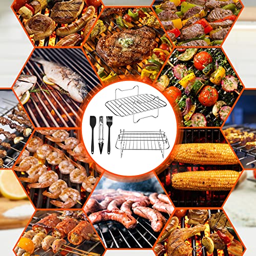 - 💖【9-Piece Air Fryer Accessories Set】Air fryer rack set includes 1 stainless steel steam grill, 1 stainless steel grill rack, 4 stainless steel skewer, 1 oil brush, 1 food clip and 1 spatula, which can help you make kebabs, steaks, vegetables, potatoes, pizza, grill pies, etc. Use the air fryer rack to cook multiple foods at the same time, saving time and convenient to use.