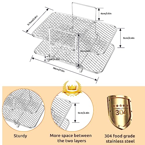 - ★【Premium 304 Stainless Steel】: our 2 Tier Air Fryer rack is made of premium food grade 304 stainless steel, making it durable and rust-resistant.Its sturdy construction and non-stick surface make it easy to clean and durable for long-term use.