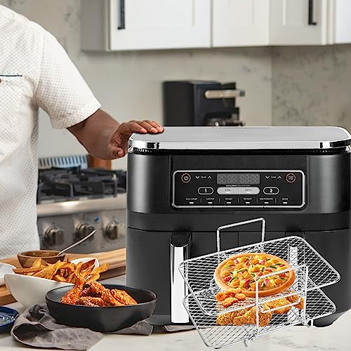- ★【Compatible with Square Air Fryers】: The size of SISLAF air fryer rack is 19*12*10cm,designed to compatible with Ninja air fryerAF300UK/ AF400UK,Tower 17088 ,and Instant vortex Salter EMtronics and other 7.6-9.5L dual Air Fryer.