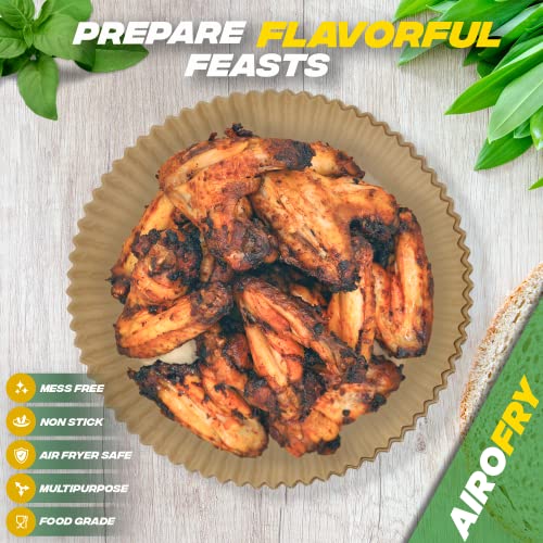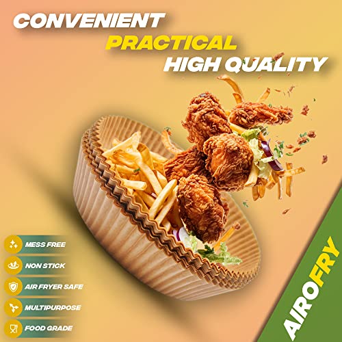 - 🥘【𝗔 𝗠𝘂𝘀𝘁 𝗳𝗼𝗿 𝗠𝗲𝘀𝘀-𝗙𝗿𝗲𝗲 𝗖𝗼𝗼𝗸𝗶𝗻𝗴】If you are tired of continuously cleaning your air fryer after every meal, the AIROFRY air fryer inserts are what you need! Oil and grease-proof, durable and versatile, these round air fryer liners provide a mess-free cooking experience without sacrificing the taste and flavor of your food!