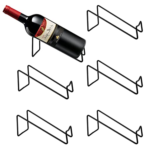 Akamino 6PCS Wine Bottle Rack, Single Wine Holder Stand for Tabletop Display, Simple Style Steel Wire Rack Modern Black Metal Wine Organizer for