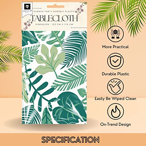 AKH® Summer Party Tablecloth | 132 x 178cm | Hawaiian Leaves Flamingos Lemons Patterns Tableware | Wipeable Durable Rectangular PVC Table Cover |