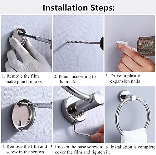 • Easy Installation: Includes all necessary mounting hardware for installation. Instruction page on how to assemble is also included in the box. Package includes: 1 X Towel Ring, 2 X self-tapping screws, 2 X screw plugs, 1 X Allen key & 1 User Manual for Easy Installation