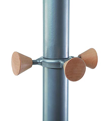 - Coat stand comprises hanging bar for six coat hangers, four hooks for accessories, umbrella holder, removable drip tray and metallic weighted base
