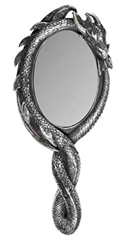 - High quality silver resin dragon shaped hand mirror by Alchemy England