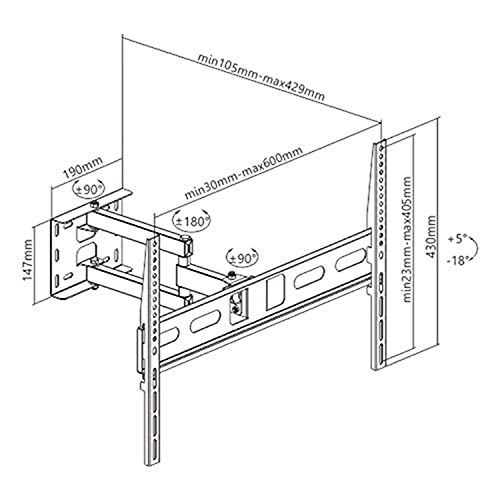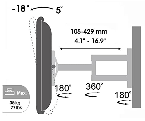 - Super flexible: the mounted TV can be easily moved for best viewing angle: Tilt down, Swivel left/right, Pull out / Push in, Overall dimensions: 430x430x105mm (HxVxD), articulate arms extend up to 429mm (16.9")