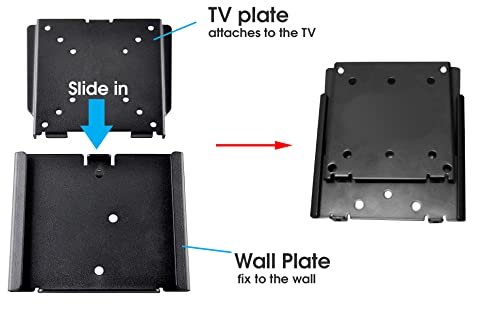 - Simple 2-plate design, one plate attached to wall and one to the TV, simply slide in to mount on to the wal or slide out to remove;