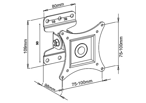 Product Description Allcam LCD201: the surprisingly flexible wall bracket for customers with small budget LCD201 17" 19" 22" 24" 26" LED/LCD TV Wall Bracket 30° Tilt , 180° Swivel, 360° Free Rotate VESA 100 75 Holds up to 15 kgs weight The Allcam LCD201 is the super flexible wall mount bracket for small-sized LCD TVs. The LCD TV wall bracket is able to swivel left/right 60 degrees , tilt up/down 15 degrees and rotate 360 degrees (along the plane of the TV screen). Ideal for installation in kitchens, hotel rooms, and corridors, the LCD201 TV wall bracket is the best companion for 15" to 26" LCD TVs with VESA 100x100 or VESA 75x75 mounting holes. Allcam makes a wide range of TV wall brackets and floor stands, with many different styles and features. If you want want more flexibility than what the LCD201 tv bracket offers, you can consider the Allcam LCD101, LCD107 which have swivel arms. If your TV is 30" or over (or 26" but with VESA 200 mounting holes), please choose Allcam LCD2900 or L293SS, L273S which are bigger and come with swivel arms. FAQ: Is this bracket compatible with my TV? How to check the VESA size of my TV/Monitor? A: First locate the 4 threaded holes at the back of your TV/monitor, then measure the horizontal/vertical distances between these holes. If horizontal = 200mm and vertical = 100mm, then its VESA size is 200x100. It is always better to choose the smallest bracket compatible with your TV because there is less chance of it blocking the TV's AV ports. So if your 27" TV has VESA 100x100, the Allcam LCD201 (max VESA 100x100) is better than LCD2900 (max VESA 200x200), , although both brackets are compatible with your TV. by Allcam est. 2002
