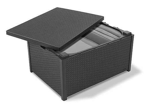 - Rattan effect design.Waterproof and climate resistant.Fabric: Polypropylene: 100 percent Easy to open/close lid.Easy to clear