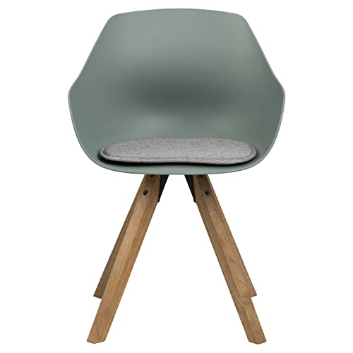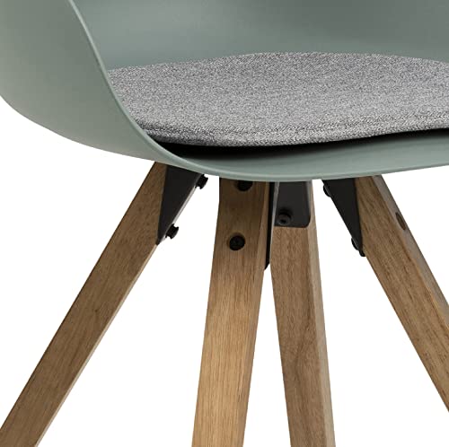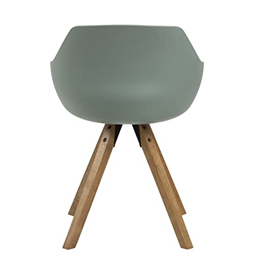 Amazon Brand - Movian - Dining Chair with Armrests, Plastic Panel with Wooden Legs, Set of 2, Olive / Light Grey, 56.5 x 53 x 80.5 cm