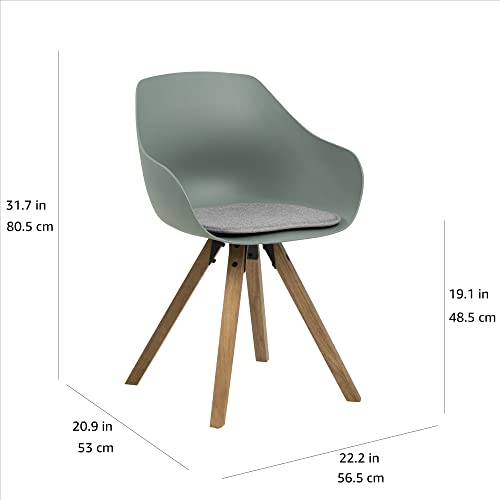 - Time for a new dining room? This olive green dining chair effortlessly combines modern Scandinavian design with refined functionality. The shaped seat adapts to the natural curvature of your back and offers you a comfortable seating experience. Thanks to the loose seat cushion, smooth surface and clean lines of the design, the dining chair is easy to wipe clean. The contoured seat stands on a sturdy oiled oak base that gives a natural feel and emphasises the Scandinavian look. Your dining room will thank you for this upgrade. The dining chair comes in a set of 2, which reduces the packaging effort.