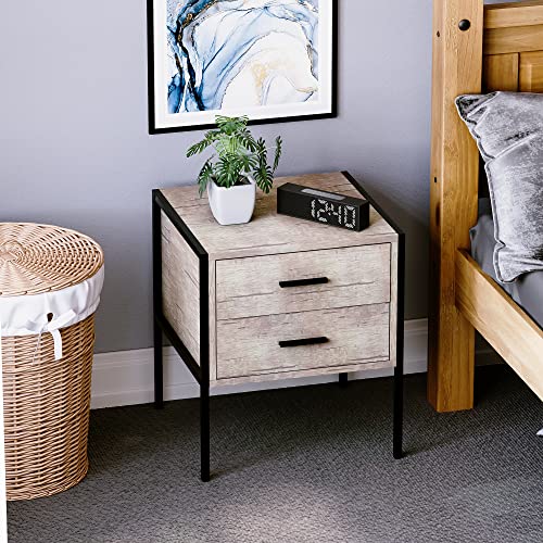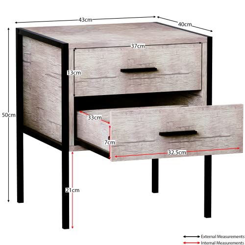 Amazon Brand - Movian Industrial 2-Drawer Rectangular Bedside Nightstand Table, Light Wood, 40 cm D x 43 cm W x 50 cm H