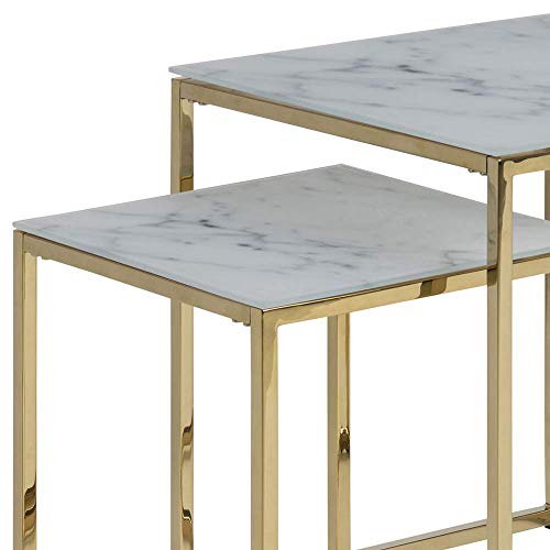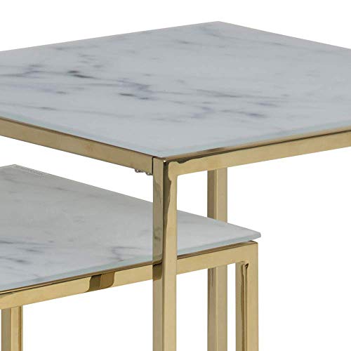 - Modern, durable design with metal base and supportive frame; high-quality and easy-to-maintain tempered glass table top with authentic-looking white marble print