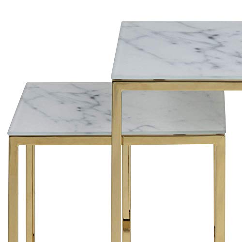 - Material: Glass top, marble print, metal frame