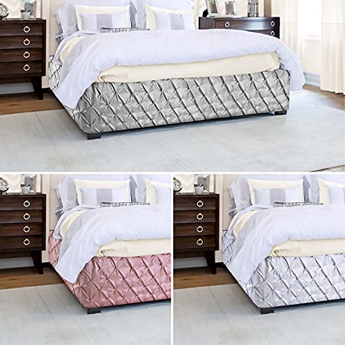 - Divan Bed Base Frame Cover Wrap Valance, Artificial Silk, Pintuck Pinch Pleat, Silver Grey, Blush Pink, White, (1006)