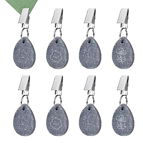 - 【WHAT YOU WILL RECEIVE】Package included 8 pieces of tablecloth weights with clips in 4 different carved patterns, sufficient quantity and variety of styles can meet your daily use and replacement needs.