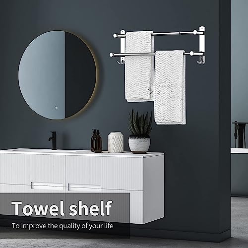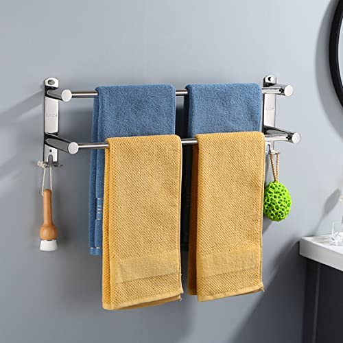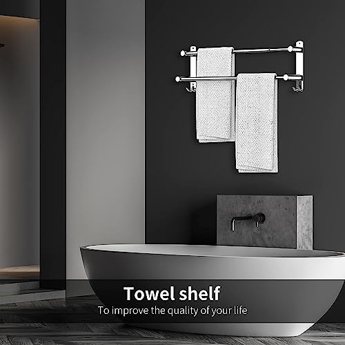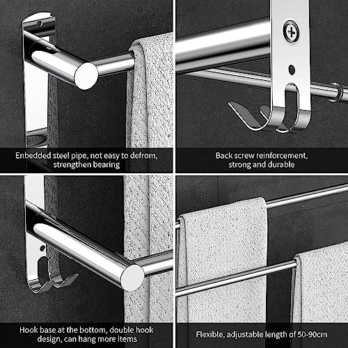 - 【Unique Design】This towel rail can hang more towels through dislocation design, and the retractable feature is more user-friendly, and it also has two hooks, which are convenient for hanging small objects.