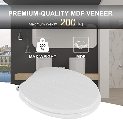 - High-Quality Materials: The toilet seat is made of WOODEN MDF, which is healthier than plastics materials and has better scratch resistance. Anti-fouling and easy to clean. It’s an Oval shape toilet seat most common to European market size. comfortable ergonomic design, Simple and sleek.