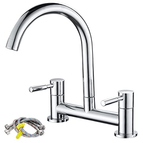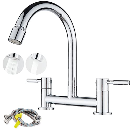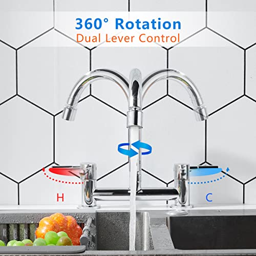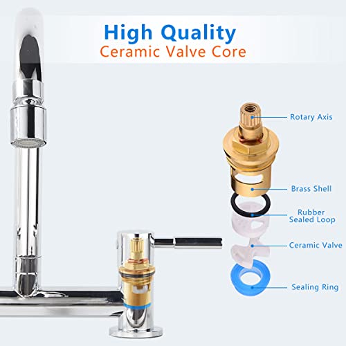 - ❸【TWIN LEVERS】Twin levers for independent hot & cold flow control. 1/4 inch ceramic turn disc technology provides you will the ultimate in smooth operation.