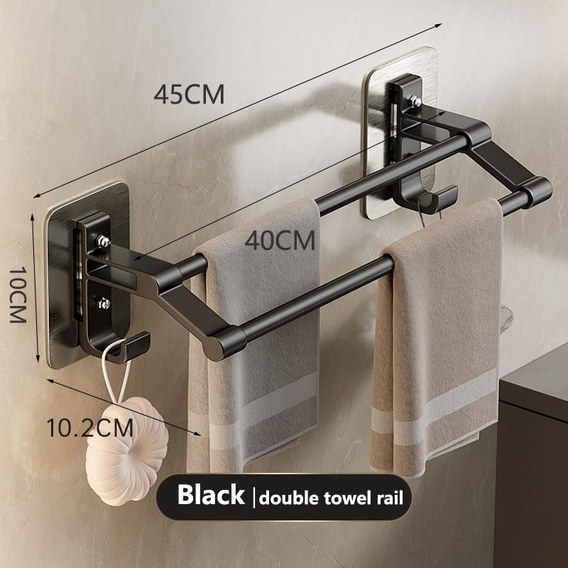 - 【Size】45CM*10CM*10.2CM. Length of the rod: 40CM. This double towel rail can be used in kitchens, baths.