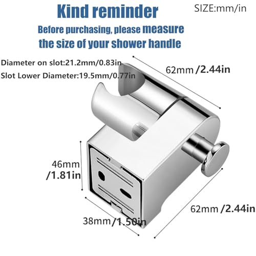 - 【Wide Compatibility】Our universal adjustable shower head holder Fits most standard hand shower heads, providing a versatile solution for your shower needs.The top diameter of the holder is 0.83 inch (21.2mm) and the bottom dia. is 0.77 inch (19.5mm).(Note:Please check the size of your shower head before purchase.)