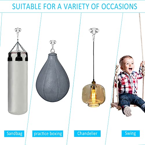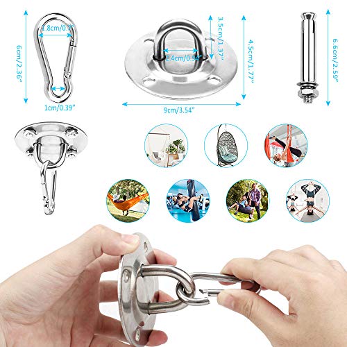 - Package Includes: You will get 2 set heavy duty hanging kits including 2 pcs ceiling bracket, 8pcs metal dowels, 2 pcs rotating shackle and 2 pcs carabiner, suitable for concrete ceilings or wooden beams.