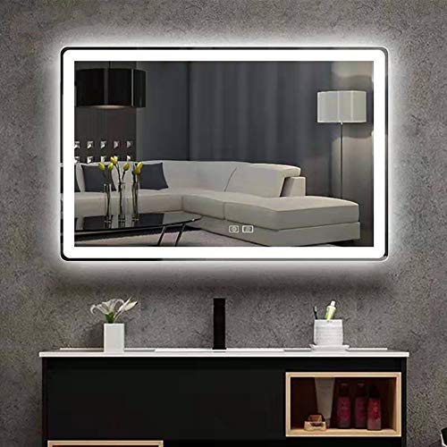 • * [ECO-FRIENDLY AND DURABLE] Durability and anti-scratch performance compared to the competition, keeping our led lighted mirror brand new for years to come. And the light beads are more densed, it is brighter. LED lifetime: 50,000 hours saving your time and trip to buy a new bulb. The mirror is 5MM using environmental material.Copper Free.