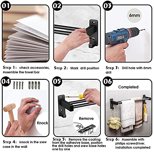 • RUSTPROOF: The bathroom towel holder is made of space aluminum and ABS plastic, protecting against corrosion & rust. Suitable for the humid environment such as bathroom and kitchen.