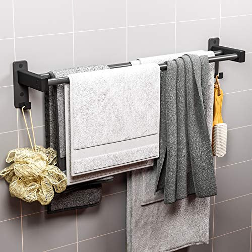 ANVAVA Double Towel Rails 60cm with Hooks, 23 inch Wall Mounted Bathroom Towel Holder Kitchen Towel Bar Rack, Space Aluminum, Matte Black