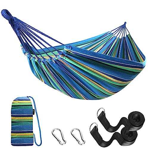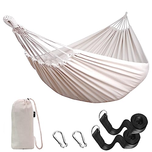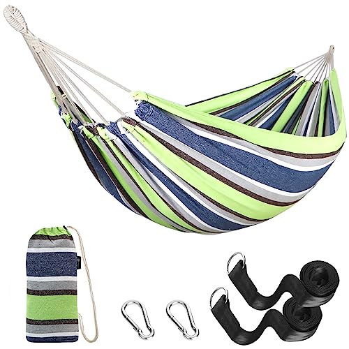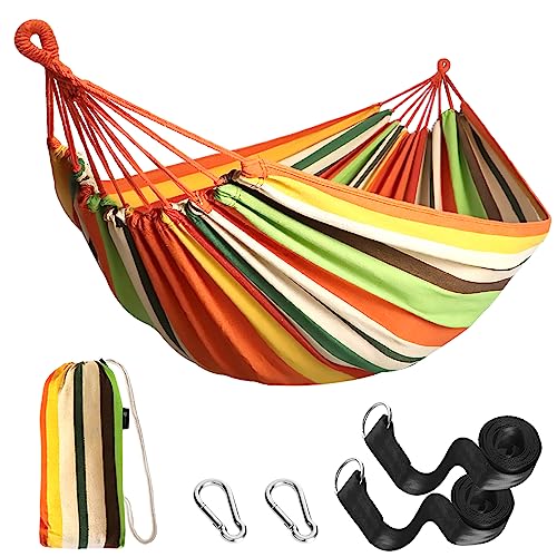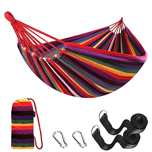 - Outdoor & Indoor Use - This cotton hammock is used for swinging, sleeping, or resting. They are also used as a lightweight bed on camping trips and it is often seen as a symbol of leisure, relaxation and simple easy living. Come and grab this excellent hammock and enjoy the afternoon in the brilliant sunshine. The comfort and reliability of the hammock allows you to listen to music while enjoying a relaxing reading.