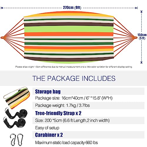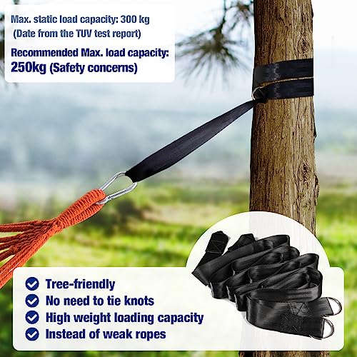 - Comfortable Material - The tightly-woven fabric provides a supportive and comfortable sleeping surface, and the hammock conforms to your body shape to reduce pressure points and provide maximum relaxation. The colorfast cotton is resistant to wear and tear and is designed to withstand outdoor use. Recommended max. load capacity: 250kg (Safety concerns); TUV report max. static load capacity: 300 kg