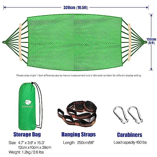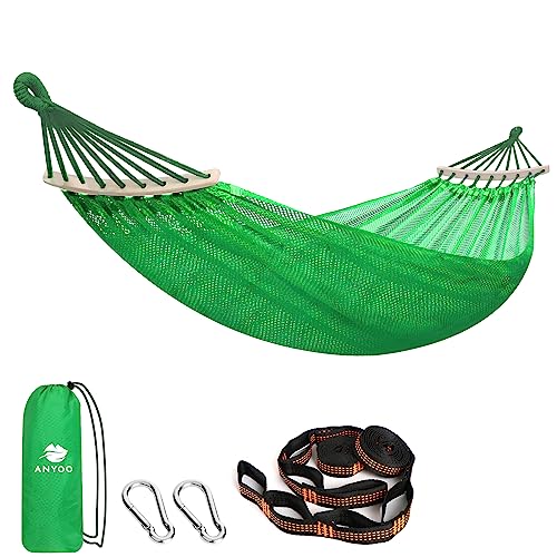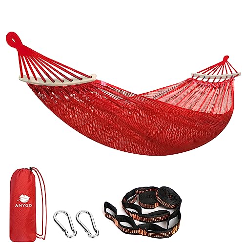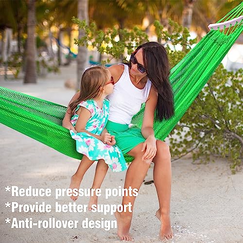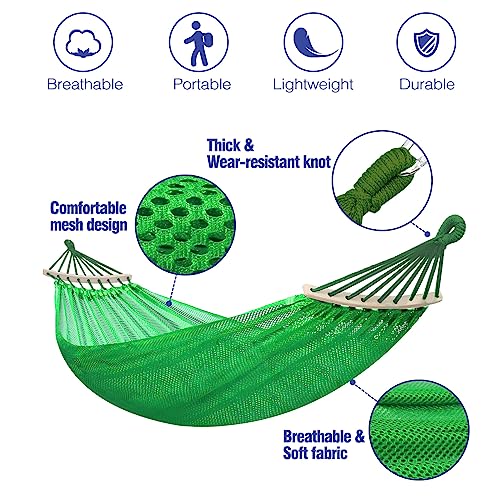 - Cool-to-the-Touch Sensation: The mesh consists of evenly spaced, breathable holes that prevents the accumulation of moisture and perspiration, ensuring quick drying, allows for optimal airflow, promoting a refreshing and relaxing experience. With a mesh hammock, you can enjoy the gentle breeze and maintain a comfortable body temperature, even in scorching weather.