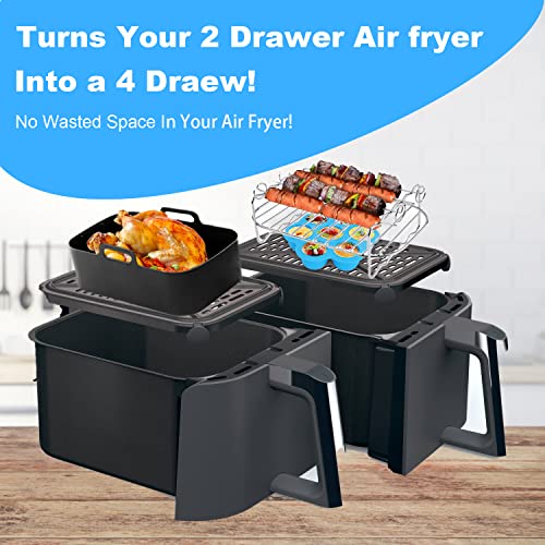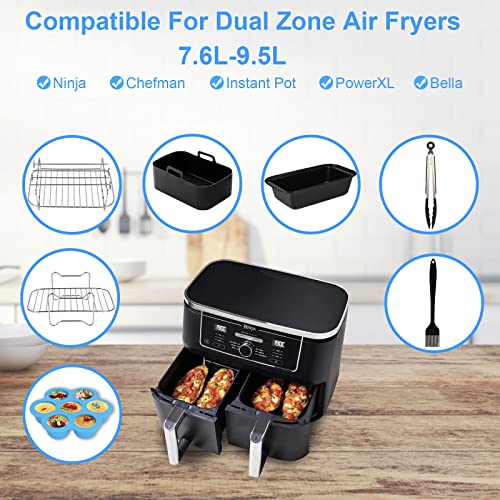 - 【Compatible with Dual Zone Air Fryer 7.6L-9.6L】Apluskis double drawers air fryers accessories compatible with Ninja Foodi AF300UK 7.6L /AF400UK 9.6L, Instant Vortex 7.6L, Tower T17088, EMtronics EMDAF9LD, MONCOOK 9L, Salter EK4548 8.2L, Devology 8L, etc most 7.6L-9.6L dual zone air fryers.