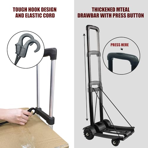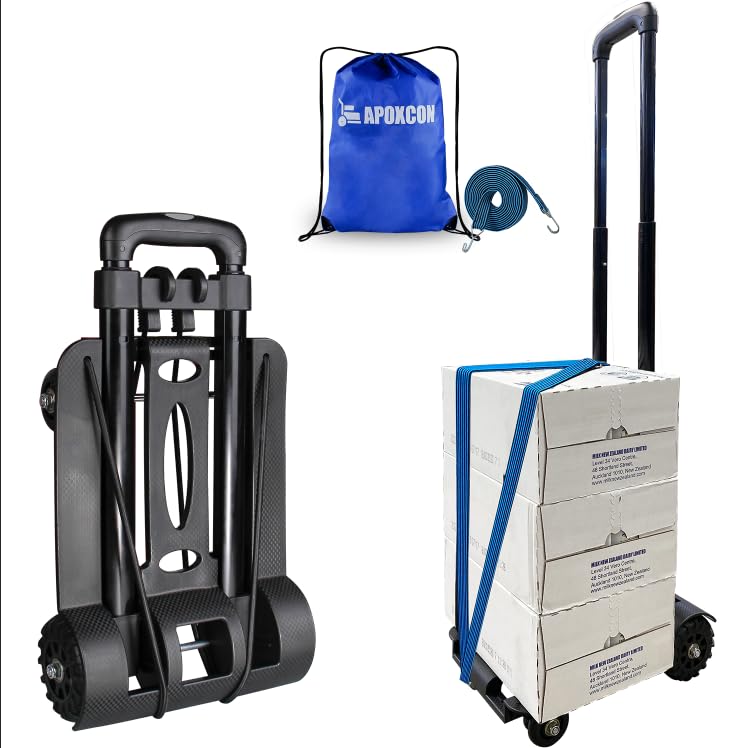 - ♥ Widely Used --- The hand truck is equipped with extendable rope, so you can freely adjust the length of the elastic rope to fix the goods. APOXCON quality hand truck is suitable for daily shopping, house moving, outdoor carry, office daily use and so on.
