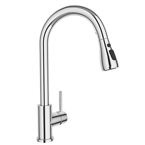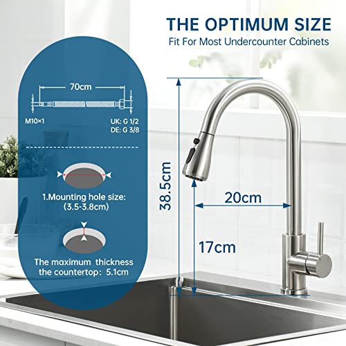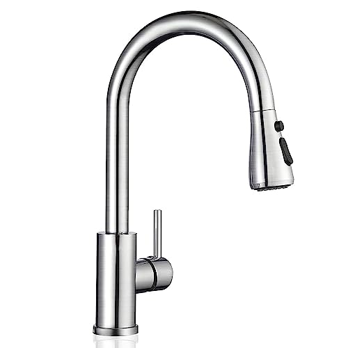 APPASO Kitchen Sink Mixer Taps with Pull Out Spray, Solid Stainless Steel Pull Out Kitchen Tap with 3 Modes, Brushed Nickel High Arch Single Hand