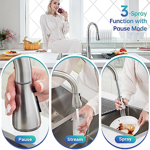 - 𝟯-𝗠𝗼𝗱𝗲 𝗦𝗲𝘁𝘁𝗶𝗻𝗴 -- Your kitchen sink mixer tap provides a choice of aerated STREAM for non-splash cleaning and filling, a powerful SPRAY for rinsing, PAUSE for saving water, satisfying your various cleaning needs!