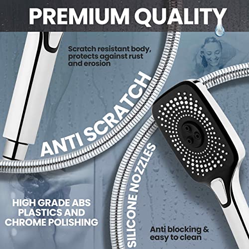 - ✅ Durable Materials: Constructed with Long-Lasting, High-Quality Materials, including an ABS body and Stainless Steel Hose with a liquid silica gel inner tube, ensuring rust and corrosion resistance for enhanced durability. The premium ABS Body and Stainless Steel Hose provide high-temperature resistance, protecting against wear and tear and ensuring a long-lasting shower head. This premium handheld square shower head is designed for a luxurious and revitalizing shower experience.
