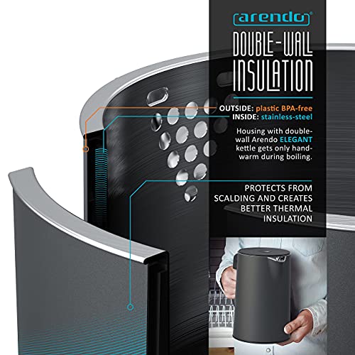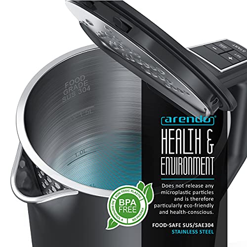 - Arendo ELEGANT kettle is BPA free, DOES NOT RELEASE ANY MICROPLASTIC PARTICLES and is therefore particularly eco-friendly and health-conscious. The inner housing is made of food-safe SUS/SAE304 stainless steel.