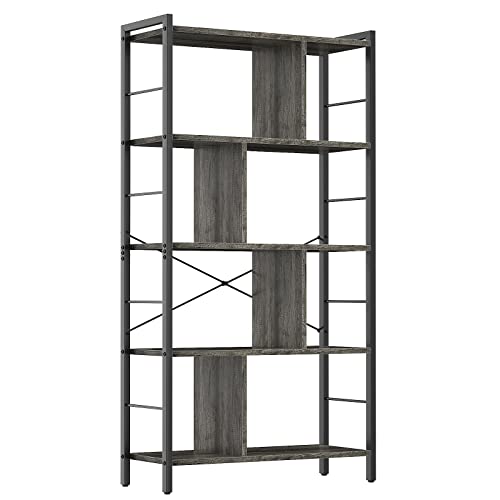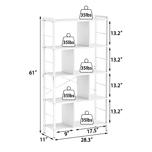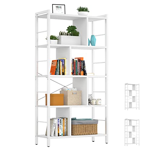 - Large Storage Space: 5-Tier bookshelf provides enough space to display and store your favorite items, books, family photo, CDs, and plants. Make your space more elegant and tidy.
