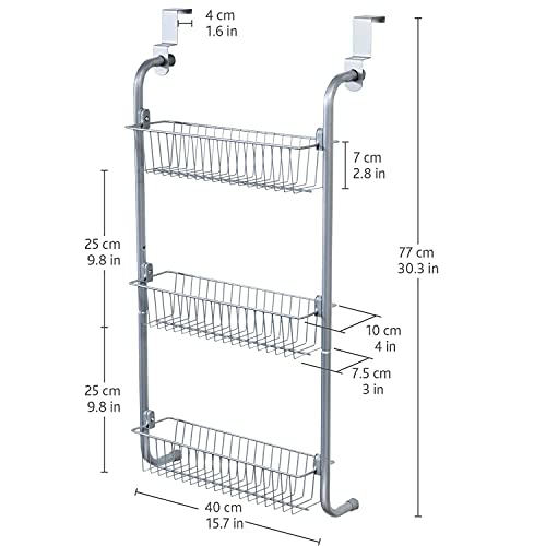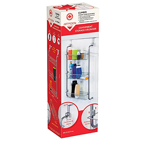 art moon Climber 3 Tier Over the Door Storage Baskets, Hanging Racks for Kitchen and Bathroom, Steel, 40 x 13.5 x 77 cm
