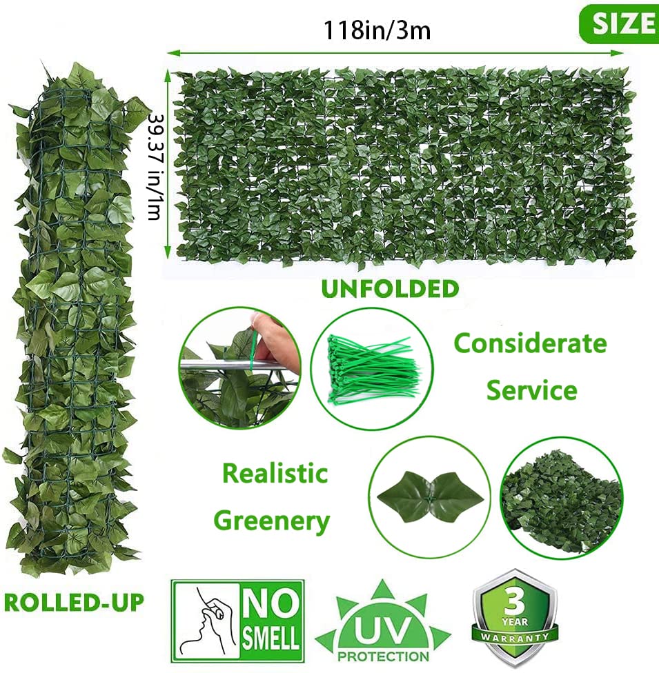 - Realistic look: 1 roll garden screening measuring 3m x 1m. All covered with lush lvy leave and easy to install, simply install with wire ties or tape, cut to the size and shape you want (it can even be bent) and use as wall decoration, railings and privacy.
