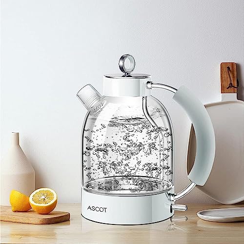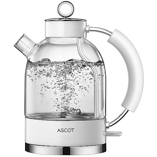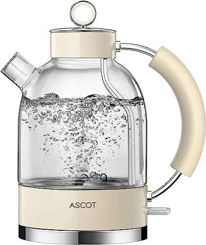 - DESIGNED IN DENMARK - ASCOT Glass electric kettle with unique design and stylish appearance. Anti-scald handle, round spout, separate lid, and spout filter are made under strict quality standards.