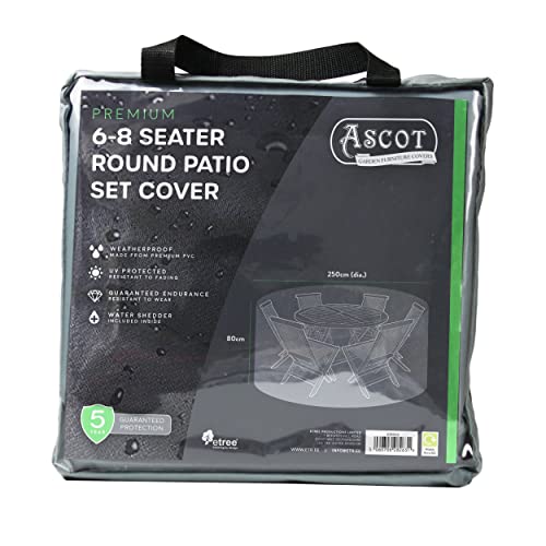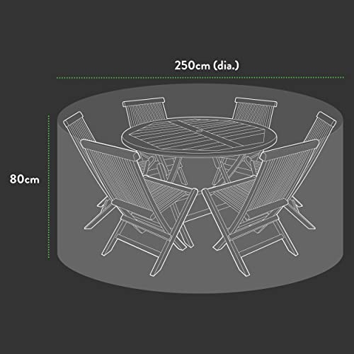 - Easy Sizing and Fit: Our Ascot Garden Furniture Covers come in a variety of sizes, the size of this cover is 250 (Dia.)X 80(H) cm. To ensure a perfect fit for your outdoor furniture, we recommend measuring your furniture before ordering. We've also included an illustration in our product photos to help you check your fit. Don't worry if the cover is slightly short - this will allow for additional airflow and is intentional for optimal protection against the elements.