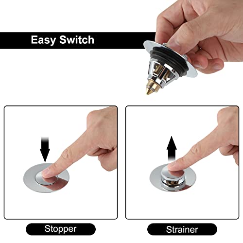 - [ Easy Switch ]: Improved extra stable compression spring is made of pure brass with good rebound resistance. Just press the top cap down gently to switch 2 modes – stopper (to keep water) and strainer (to drain off water)