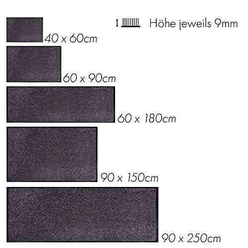 - The size of the doormat is 40 x 60 cm, 60 x 90 cm, 90 x 150 cm, 60 x 180 cm, 90 x 250 cm, 120 x 180 cm and has a height of approx. 9mm