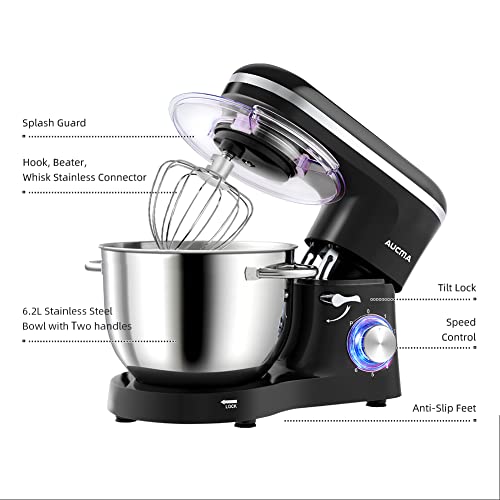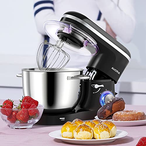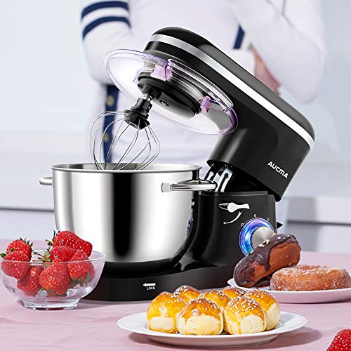 - 【MULTIPLE ATTACHMENT & ANTI-SLIP DESIGN】 Aucma food mixer for baking comes with three mixing accessories: whisk, dough hook, mixing beater.Anti-slip suction feet keep the kitchen mixer steady and no displacement even it is working.