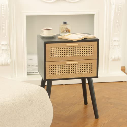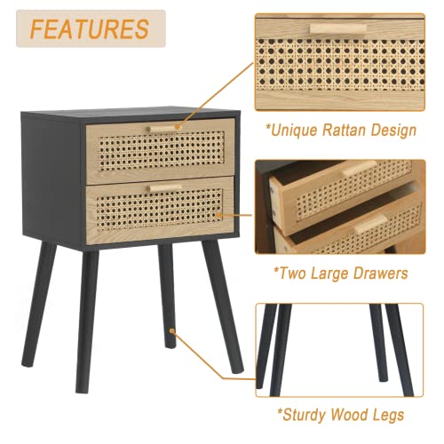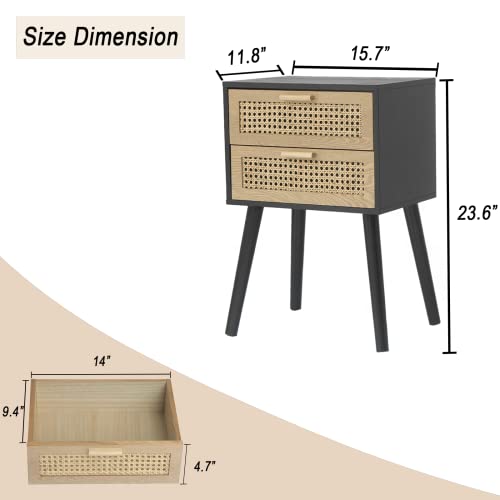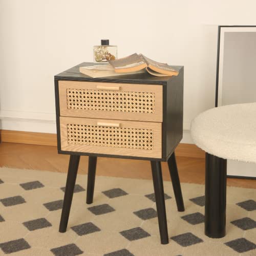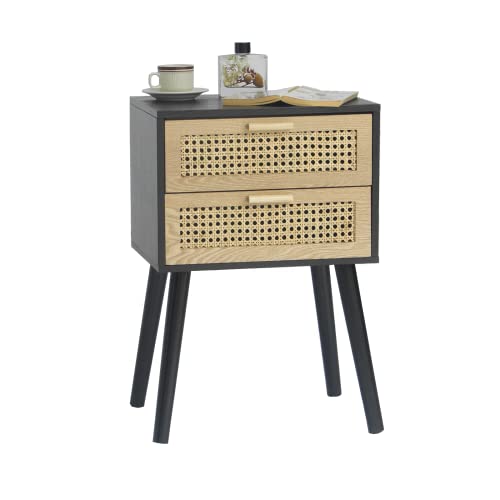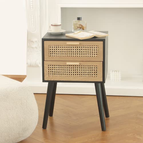 - Mid Century Nightstand: The modern nightstand is designed with two rattan drawers that offer large space to store any items you like, and a durable solid wood legs structure for long-term use. It is combining aesthetic pleasure and elegance with great practicality for your sweet home.