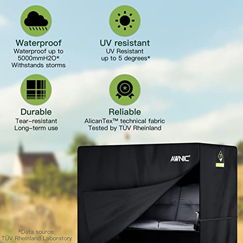 Home Garden Furniture AWNIC 3 Seater Garden Swing Seat Cover Waterproof, 420D Swing Chair Covers Windproof Anti-UV Heavy Duty Fabric Large Outdoor Garden Hammock Cover