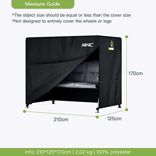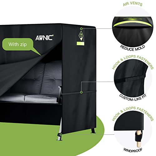 AWNIC 3 Seater Garden Swing Seat Cover Waterproof, 420D Swing Chair Covers Windproof Anti-UV Heavy Duty Fabric Large Outdoor Garden Hammock Cover